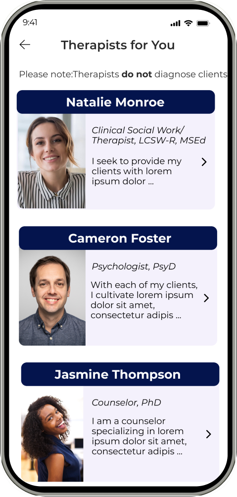 The Therapist Directory implemented a feature that empowers users to select therapists, ensuring mental health care is approached with personalization and expertise.